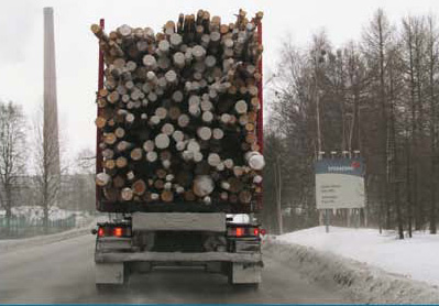 Greenpeace investigators followed timber trucks from the high conservation value forest of Liperinsuo (logged by Metsahalllitus), to the Stora Enso paper and pulp mill in Oulo in March 2008.