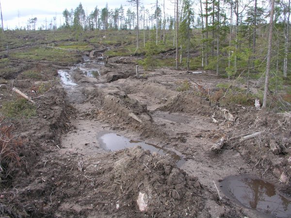 This is what you are allowed to do as a FSC-certified forest company without noticeable consequences. By Stora Enso, logged forest and deep wheel tracks in the soil. Photo: Olli Manninen/Protect the Forest 2009.
