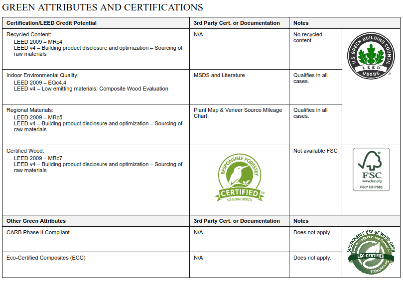 Roseburg’s website advertising its Breckenridge cladding previously included a table that included the FSC logo (click on “Sustainability” in this archived version). The small print next to the logo states, “Not available FSC”. That looks a lot like misuse of the FSC trademark to me: